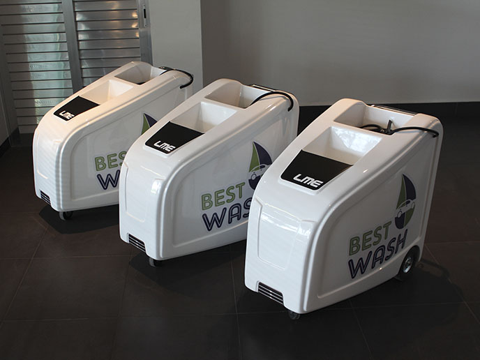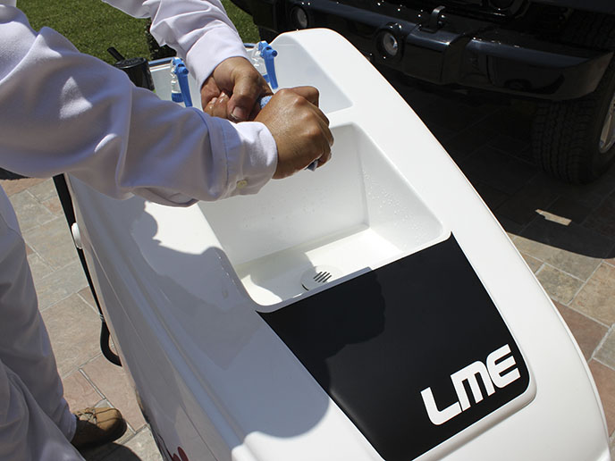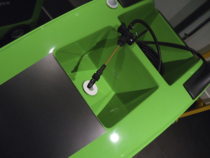 Amplio Lavabo de 30 cm. x 25 cm. (el más grande del mercado) para enjuagar trapos y cepillos sucios; conectado al tanque de agua residual de 30 Lts.